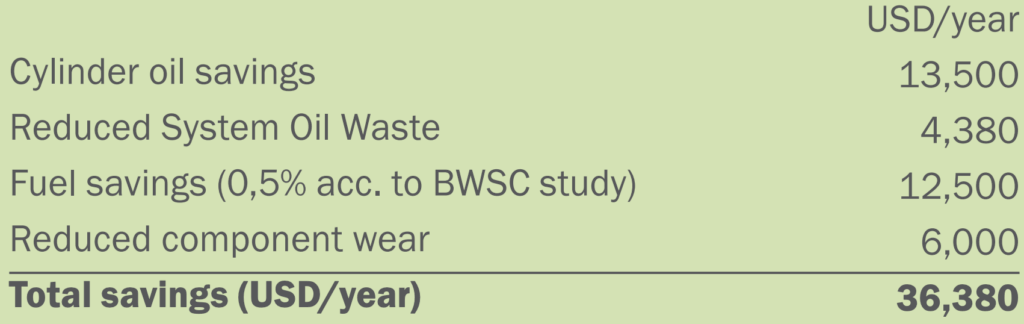 consumed cylinder oil. Transferring this to reduced annual CO2