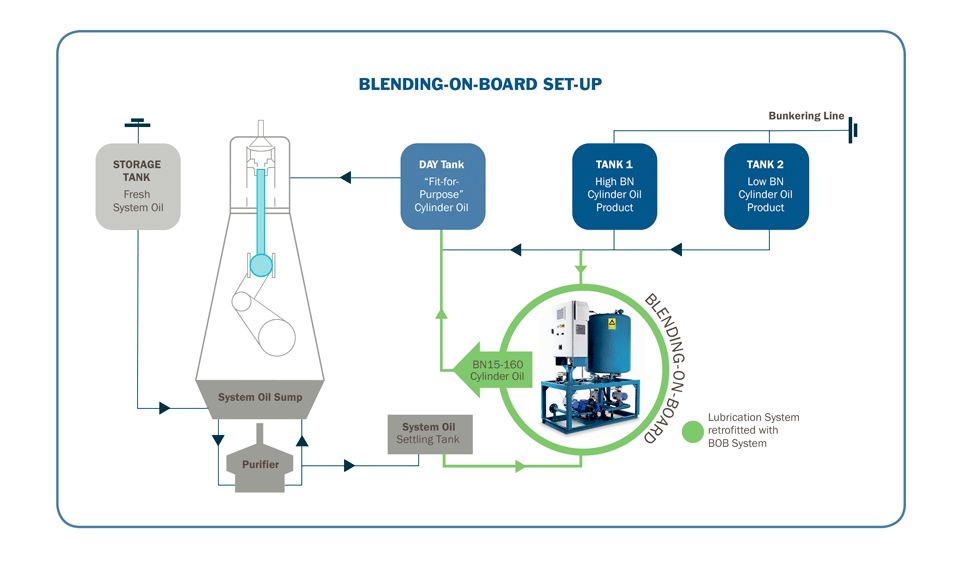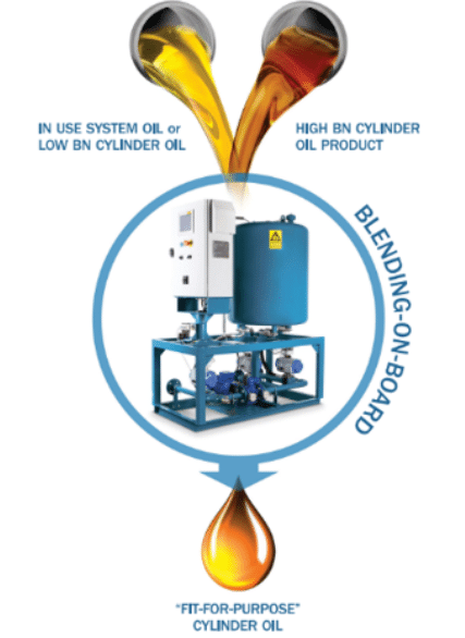 cylinder oil, as the vessel can begin to blend the existing cylinder